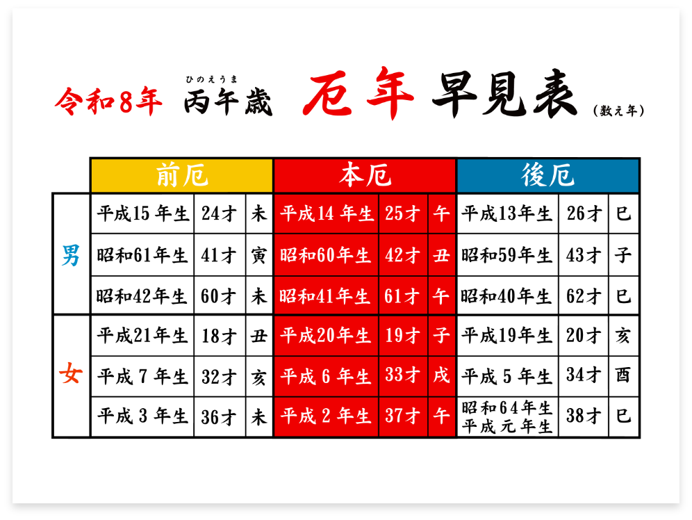 人には厄年があり、その前の年を前厄、後の年を後厄と申し、