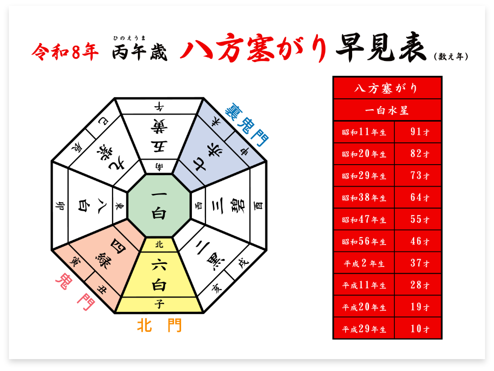 九年に一度、自分の本命星が中央にあたる年のことをいいます。この年は運勢が衰退しやすく、災いが起こりやすいともいわれています。
